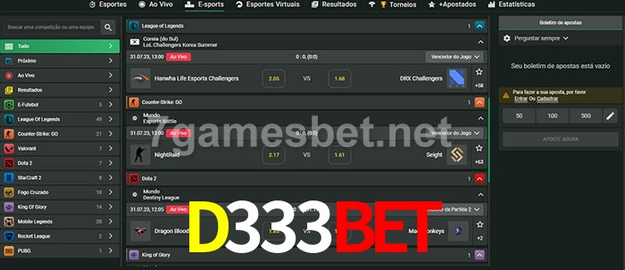 A aposta D333Bet oferece aos jogadores a experiência mais conveniente de apostas em eSports!